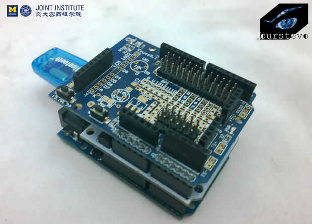Conecte la placa Arduino con el tablero de extensión y el módulo de bluetooth.