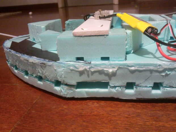 -A pesar del agujero que se muestra aquí cerca de la nariz del aerodeslizador, por razones de equilibrio puede ser más fácil escoger una posición más central para él.