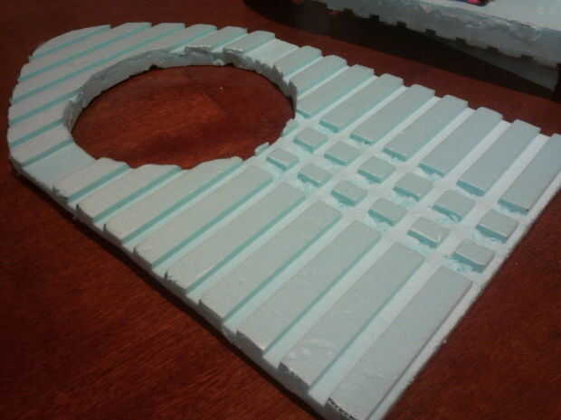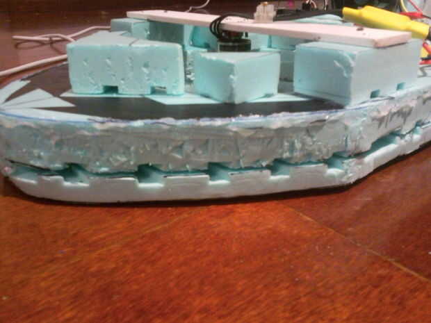 -Te voy querer flujo de aire en la falda de su aerodeslizador, así que aproveché que mi Junta de espuma de poliestireno fue surcada y ante dos misma forma piezas crestas contra cantos para hacer canales para flujo de aire proveniente del conducto motor de elevación.