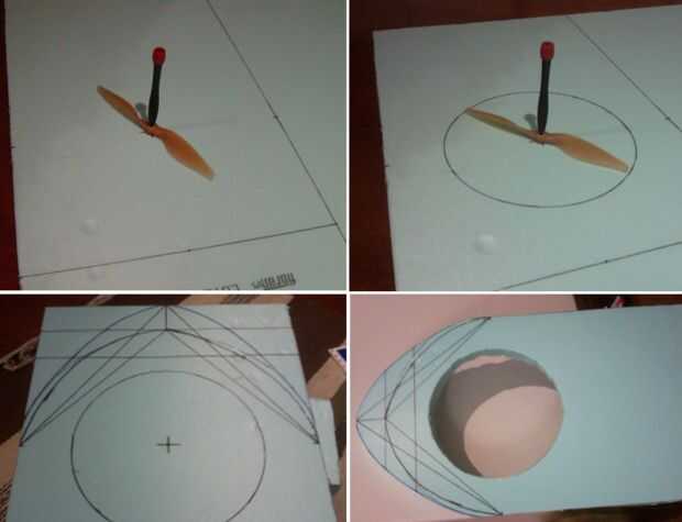 -También el motor de sustentación definirá el tamaño de la hélice a utilizar. Puede utilizar su propulsor, una impulsión del tornillo y un marcador mágico para marcar la circunferencia donde será el conducto de ascensor central.