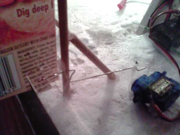 Por último doblar el segundo clip de papel por lo que es recto con un extremo doblado hacia abajo y hacia los lados, este será el enlace entre los timones y el servo.