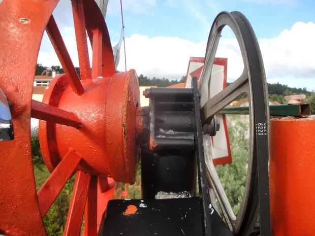 Sobre este pilar cilíndrico construyó un pedazo de tubo de hierro, aprovechado un ancla de metal de las obras. Esta pieza de tubo de unos 30 cm de largo, con en la parte inferior un cojinete, que se convertirá en otro pedazo de tubo, esta extraído desde el interior de la costilla, es decir, el hombre, que tubo con los agujeros para poner los tornillos.