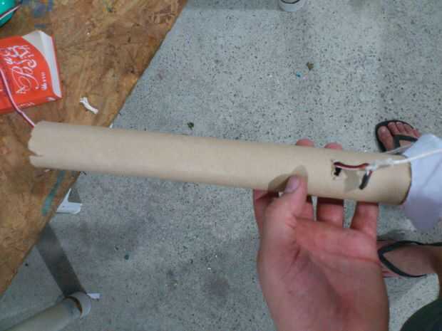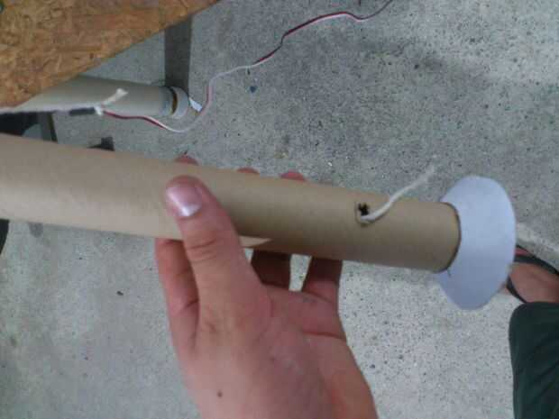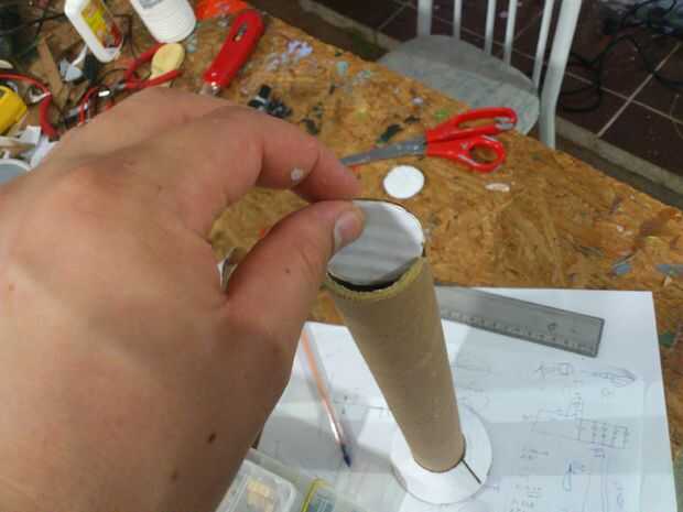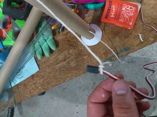 Después de eso, hice un agujero para pasar el cable desde el interruptor de láminas dentro de la torre. Para ello, utilicé una cadena como se muestra en la figura.