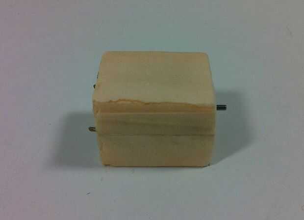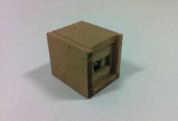 La cubierta del MDF fue cortada a la medida con una sierra de cinta con agujeros en ambos extremos para permitir que el eje del generador y las conexiones para llegar. Las dimensiones exteriores son 67 x 70 x 68 mm.