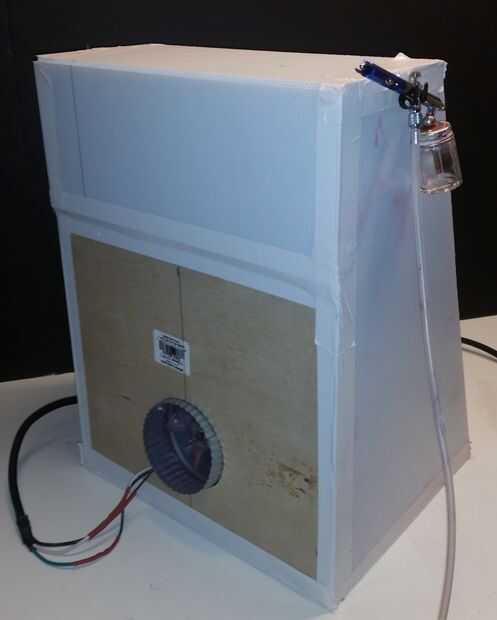 Cogí un kit de aerógrafo para mi hija hace un tiempo. Ella es muy artística y pensé que ella podía parlamentar sus habilidades en la utilización de un pincel de aire. Siempre me ha impresionado con lo que otros pueden hacer con uno ser totalmente honesto, que pensé que podría haber un par de usos para ella está bien. Así que procedimos a crear un rincón de mi tienda donde podría Aerografo she(we). Utilizamos pintura acrílica diluida con agua. El aerógrafo atomiza básicamente esto en un spray de aire. No soy un experto pero supongo que esta pintura es menos tóxica de lo que sale de un sonajero, de todos modos huele mejor. Sin embargo sabía que tomaría mucha práctica antes de que ella (o) pintar camisetas en la feria. En efecto resultaría en más de esta pintura atomizada en el tiempo que me sentía cómodo con la respiración. Así que me puse a hacer algo que no necesariamente el overspray de escape pero en el control de por lo menos, consolidar y contener las partículas. Yo quería que fuera portable, ligero y no tomar hasta mucho espacio en mi pequeña tienda.