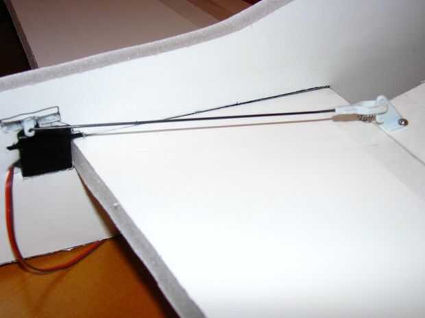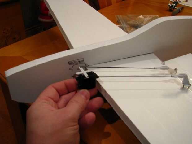 Utilice una pistola de pegamento caliente para fijar los servos en el fuselaje. Atornillar el control cuernos o cola caliente les en el lugar.