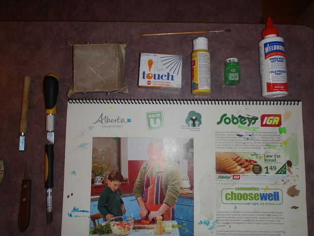 Herramientas y materiales utilizados se muestran en esta imagen. Lo único que faltaba: una regla de milímetros.