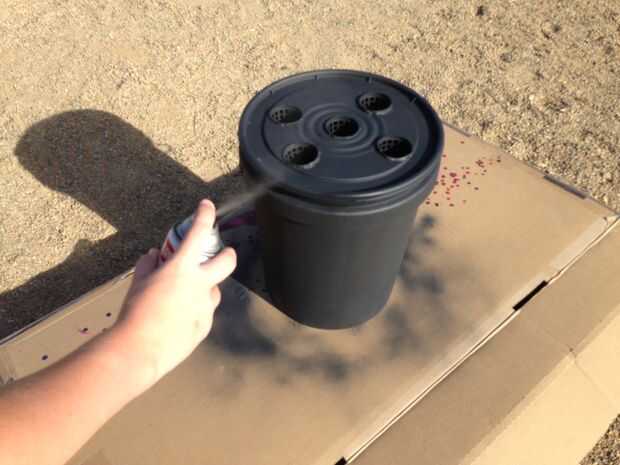 Este paso es necesario si el cubo es un color brillante (blanco, amarillo, etc). Con agua en el recipiente, la luz permitió voluntad afectan a las plantas, y demasiada luz puede conducir a organismos innecesarios que pueden crecer en el envase. Se necesita pintar el cubo con pintura en aerosol negro completamente para los mejores resultados.