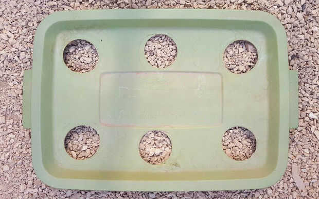 Usando un taladro con un 2½" agujero vio, corte seis agujeros en la tapa.