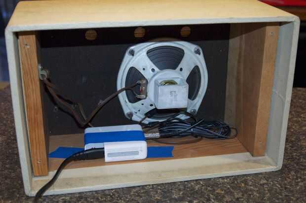 El panel posterior del altavoz del gabinete ya tenía una muesca para un cable, por lo es donde me encontré el cable de alimentación.