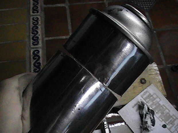 cuando la lata está hecho de presurización (usted notará que se pone genial mientras hace esta XD) seguir cortando a través de la línea, usar los bordes del último punto que corta a través y continuar desde allí, es un poco más fácil de esa manera, tenga cuidado de no a hacer puede también abolladuras (nos encargamos de pequeñas abolladuras más tarde)