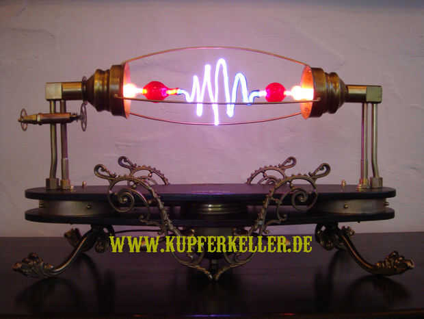 Este es mi primer Instructable aquí en este sitio. Espero que os guste mi construcciones y objetos. Ahora, aquí está mi "Aetheria Circumducitur". Una lámpara alta de voltaje con un "tubo de Geissler neón". Conducido con un generador de Tesla y 5000 voltios. Una jaula giratoria gira alrededor del tubo de Geissler.