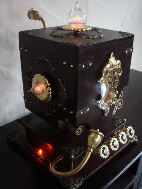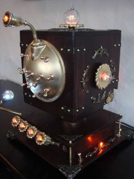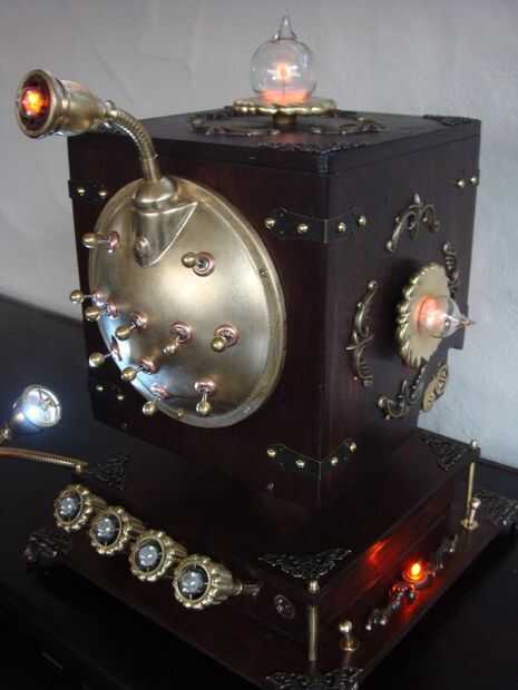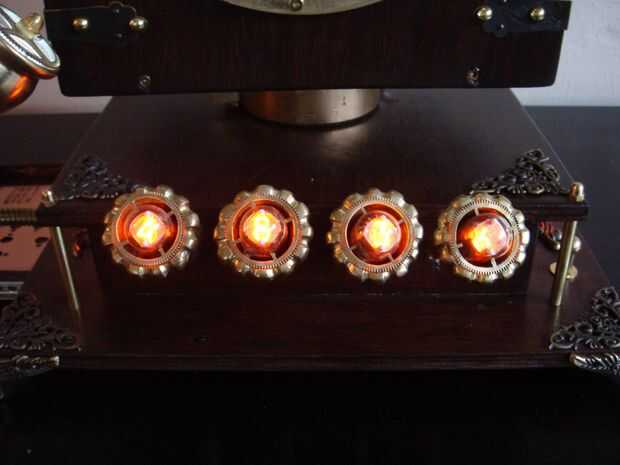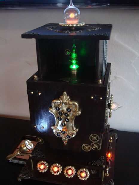 el reloj grande de steampunk con 2 pozos de luz RGB que fueron hechas por mi padre - el creador de la prop.Cuando usted está buscando en ellos tienes la sensación que se transportan en el mundo de Salvador Dalí.