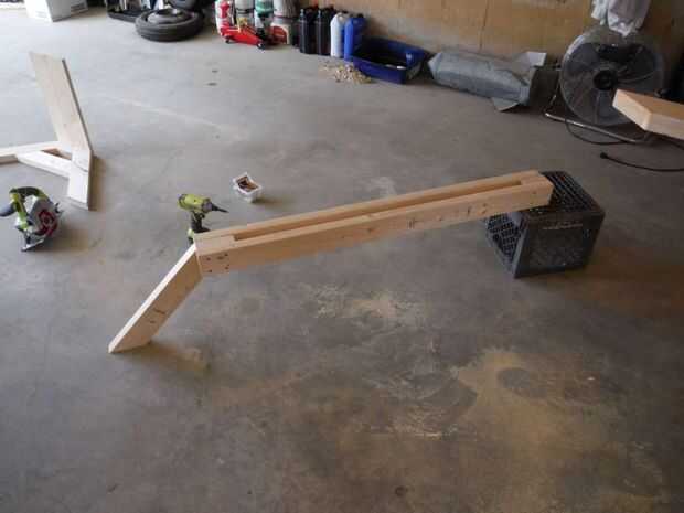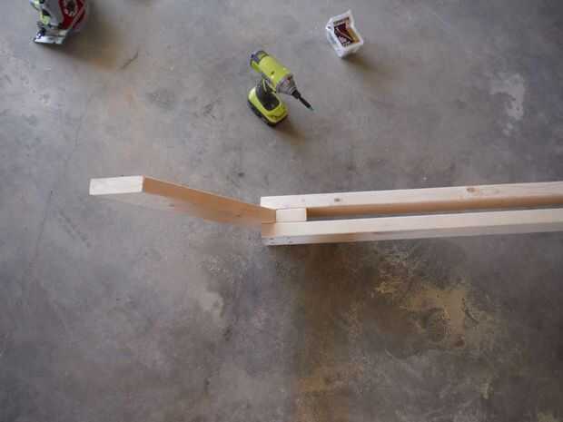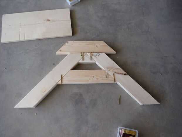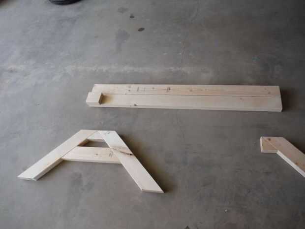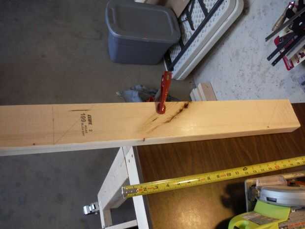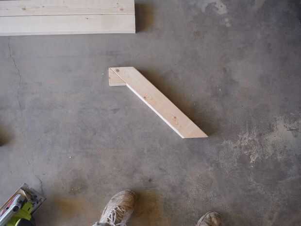 Retener el trozo triangular cortar 2 x 4" y un trozo de 4" 2 x 4"