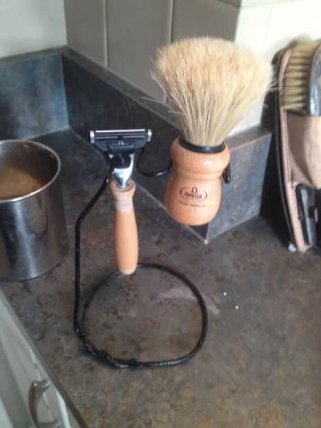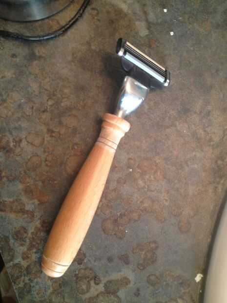 -A maquinilla de afeitar-usar una maquinilla de afeitar de seguridad que utiliza cartuchos de Mach 3. Podría utilizar el mango generalmente mach 3 pero prefiero uno con la sensación de un poco más a él así que compré una madera maneja uno de Ebay. También se podría utilizar un estrecha afeitadora o maquinilla de afeitar de seguridad estilo antiguo.