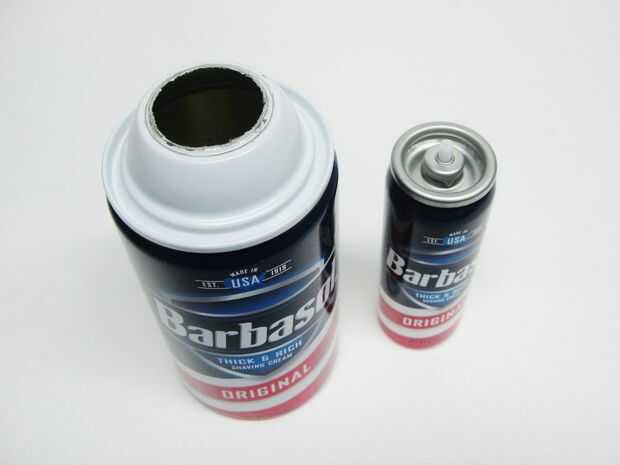 La abertura en la parte superior de la lata grande debe caber apenas la parte superior de la plata de la lata más pequeña. Serán cuidadosamente molemos el metal, hasta que la abertura es el tamaño necesario.