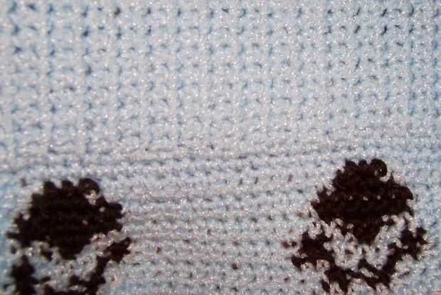 este es mi diseño original y hecho a ganchillo de bebé suave corazón rojo en azul y blanco. He hecho varios usando rosa o verde como fondo. Este es uno de mis regalos favoritos para dar a embarazadas. Los ojos y la nariz son botones que estén firmeme
