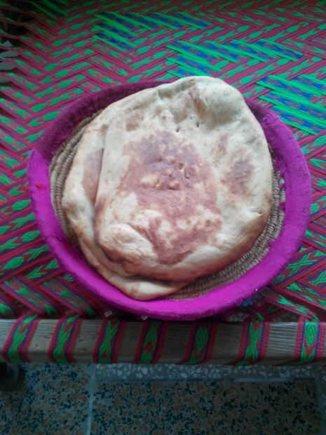 Pan afgano se almacena comúnmente en supermercados del Oriente Medio en los países occidentales. En Afganistán el panadero todavía cocina el pan tradicional separando la masa en el horno tandoor, que rápidamente se sopla para arriba y comienza a color y emiten un olor a pan fresco que atrae a las multitudes de temprano en la mañana de la gente. El panadero utiliza dos pinzas de hierro largo para tirar el pan de la pared del tandoor. Los afganos llevan el pan en bolsas de tela. Al igual en los países árabes, pan se sirve con la mayoría de las comidas y es generalmente rasgado en jirones y utilizado por los comer alimentos envolvente, para que puedan ser recogidos y transportados a la boca, de manera similar a un sandwich y también para absorber líquidos en la placa. Desde personas en Afganistán normalmente utilizan sus manos para comer, el pan actúa así como un tenedor y una cuchara. El pan sabe similar a pan lavash armenio, así como variantes India y paquistaníes de pan naan. Tiene un sabor denso y rico.
