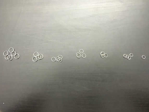 Una vez todos los anillos se cortan, necesitarás 6 de los anillos más grandes, 5 de los anillos más pequeños y 4 de todos los tamaños intermedios de anillos. (Foto 10)