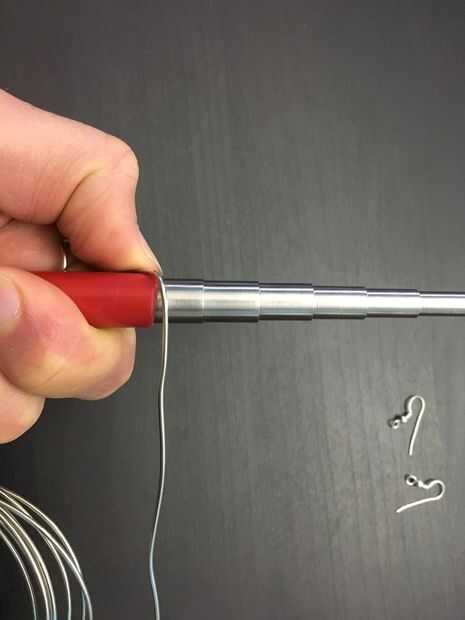 Comienzo sosteniendo un extremo del alambre firmemente el mandril con el pulgar. (Foto 1)