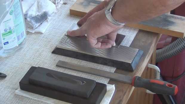 (Si no tienes una placa de diamante, o piedras de afilado, puede utilizar papel de lija 240grit pulsado sobre una superficie plana como un pedazo de vidrio de flotador)
