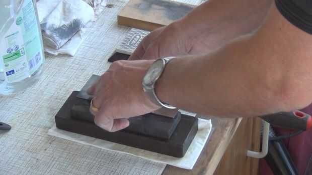 Afilado de un raspador con una tarjeta (6 / 10 paso)