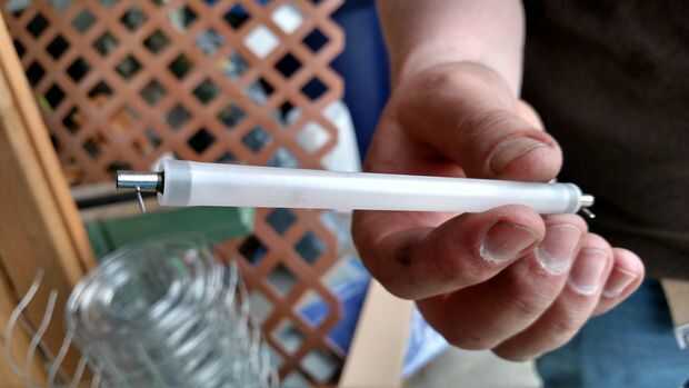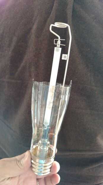A veces sólo pueden menear la base hacia fuera una vez que usted ha expuesto. Si está siendo terco, suavemente romper el resto del vidrio para que pueda alcanzar la base del cuarzo y tirar o cortar hacia fuera. Esta es la parte que hace de este bulbo roto en un afilador de cuchillos grandes.