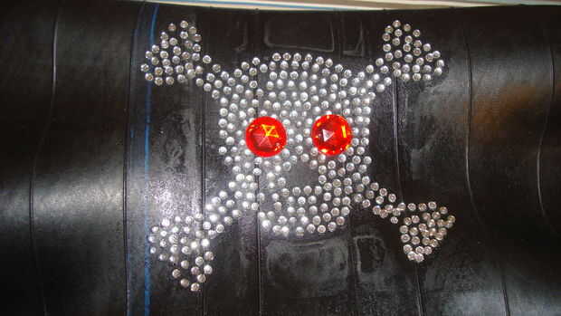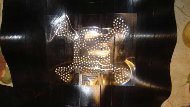 Marque el centro del lado derecho y coloque su pedrería o plantilla para estampar donde quieras y aplicarlo.