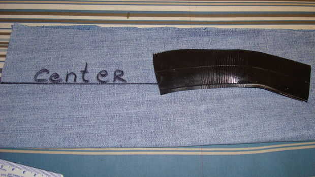 Con derecho marca Dónde está el centro y doblar la pieza de tubo interno de la marca (entre las 2 capas de tela como se muestra en la imagen.