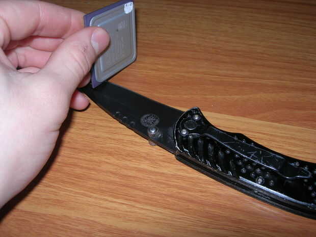 Asegúrese de que usted siempre está raspado hacia la punta del cuchillo y mientras haces eso siempre Deslice el afilador hacia la dirección de la hoja del cuchillo.