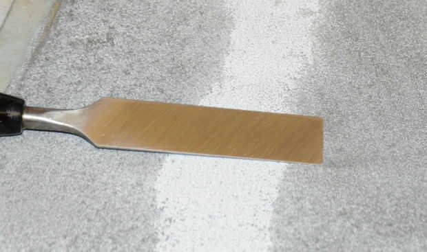 yo suelo utilizar de 80, 120, 150 y 220 lija. Después de todo, sólo tienes que hacer esto la primera vez que afilar un formón. Utilice cada grano moverse el cincel hasta obtener un patrón consistente