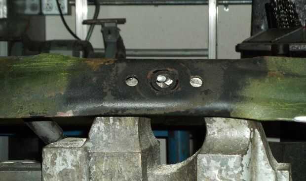 Una vez que es equilibrado puede ser puesto detrás en la podadora.