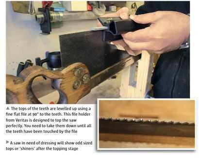 Mantener el archivo en un bloque de madera contra el lado de la sierra mantendrá el archivo plano o puede salpicar en un archivo de especialista con plantilla como el Veritas que garantice la cobertura es perfectamente cuadrada la hoja cada vez.