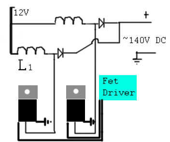 A continuación es una versión de MS Paint de la primera etapa de un cargador dc-dc. la etapa de impulso amplifica la corriente de un voltaje inferior a un voltaje más alto, todo en un ambiente de CC. Leer sobre inversores de dc-dc en la wikipedia. convertidor DC-dc (boost)