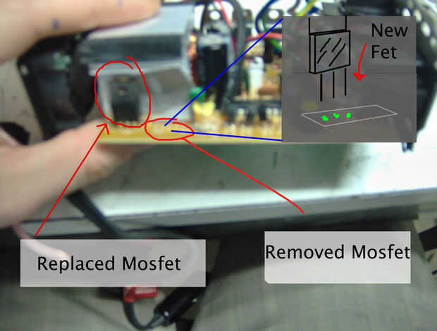 cuidadosamente reinstale de nuevo fet. volver a soldar en y vuelva a colocar cualquier disipador de calor.