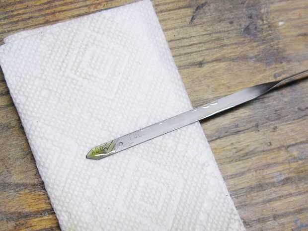 Estaba un poco bajo, así que añadí sobre una onza a la vez y comprobar el nivel de un par de veces hasta que el nivel estaba indicando en la varilla. Ver nota en la foto 2 para más detalles.