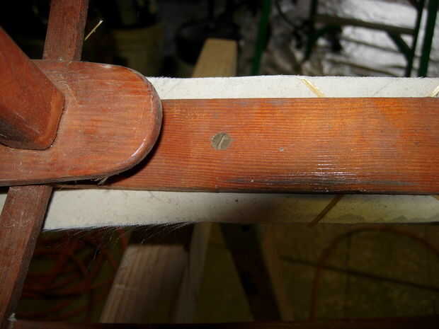 A pegado madera tornillo - en este caso un bronce más bien pequeño, más, ranurado cabeza plana Tornillo.