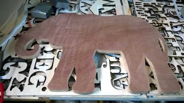 • Una forma MDF o contrachapado madera plano elefante en cualquier tamaño de elección mía fue 38 x 57 cm se puede encontrar en http://www.inf.co.uk/infinite/Shapes-Department.ht...