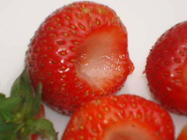 • Quitar los tallos de fresas reservar 2 para decorar.
