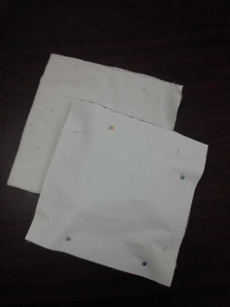 Utiliza una vieja manta de bebé para el bateo y poner 2 capas entre la parte delantera y trasera de las agarraderas. Corte utilizando el patrón mismo 7" cuadrada que se utilizó para la parte delantera y trasera de tomaollas.
