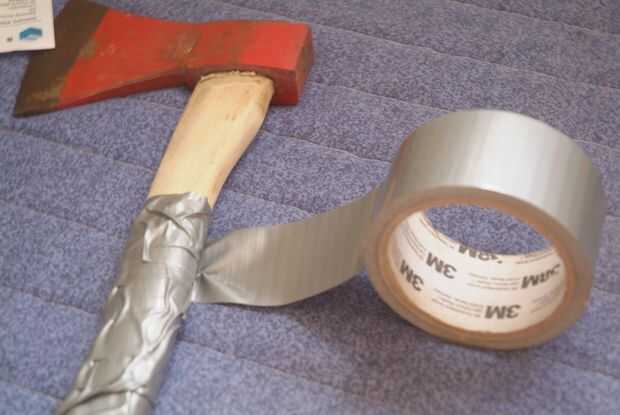 cubrir una parte de la madera que sostiene con gris cinta de pato y dejar un cuarto de la madera al descubierto, hacer otra capa o dos con más cinta de pato.