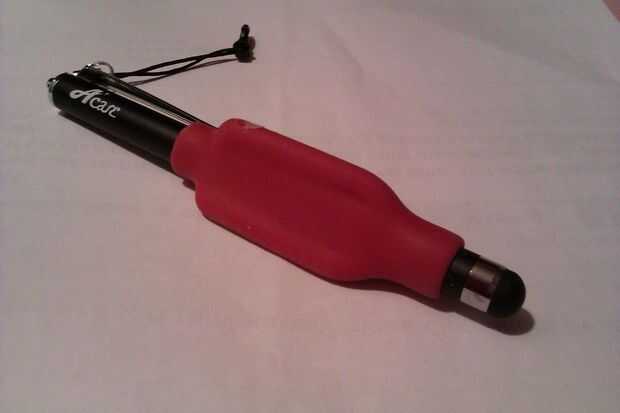 Este fracaso fue debido al hecho de que, como muchos otros teléfonos móviles modernos, la HTC es necesario un stylus capacitivos. Las tiendas de Telefónica móviles no eran de mucha ayuda, pero una búsqueda en internet y encuesta de amigos encuentra la siguiente pluma como stylus de Acase. El agarre de lápiz firmemente instalados en la nueva aguja y pronto me respaldo en los negocios. Aquí teneis las fotos de hack actualizado.