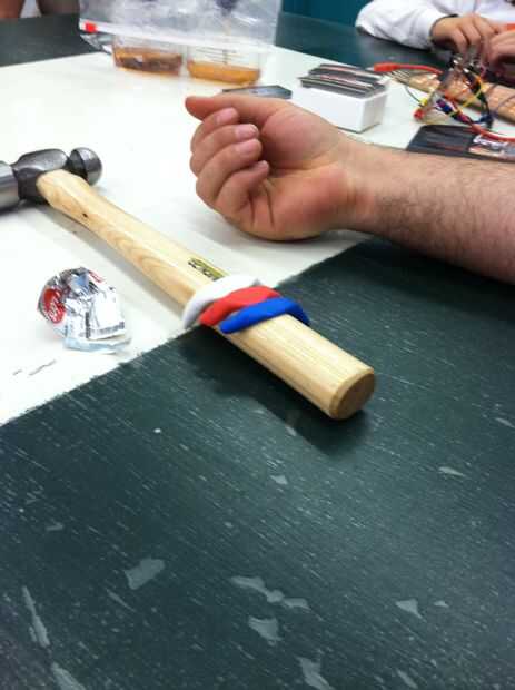 2. envoltura de las tiras alrededor de martillo donde comúnmente será.