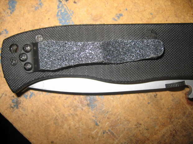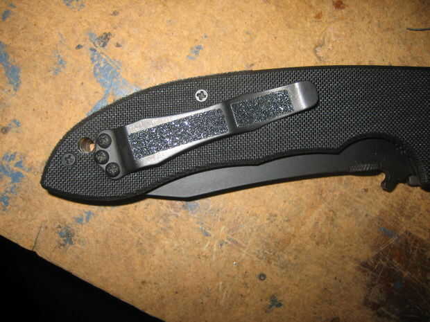 Foto 3 muestra el clip en mi Emerson CQC 7BW SFS que me sale completo agarre cinta sobre, estoy viendo cómo me gusta esta forma