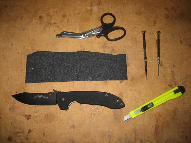 3. tijeras, tijeras de trauma funcionan mejor, pero cualquiera va a hacer (cuidado, corte la cinta del apretón puede rayarlos)