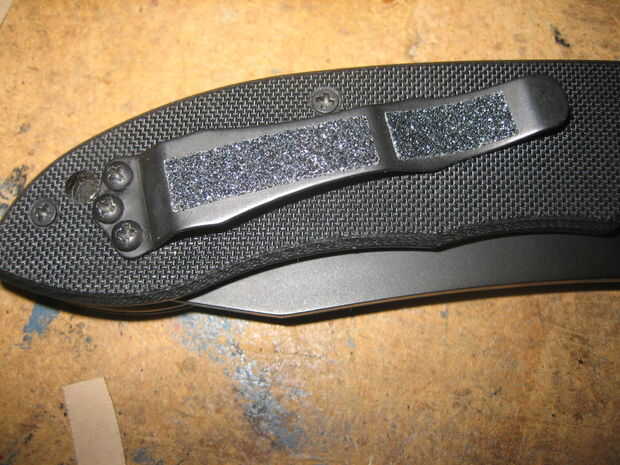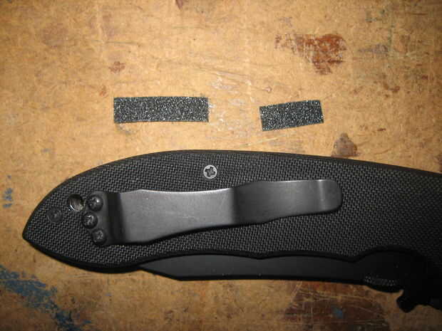 1. corte dos piezas pequeñas de cinta del apretón para el clip de bolsillo. el más grande es 28mmx7mm, y el pequeño es de 18mmx7mm (Foto 1)