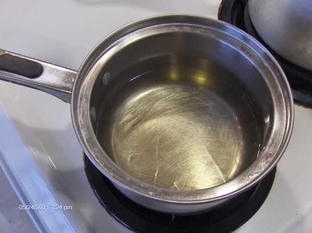 Algunas recetas dicen dejarlo drenar durante 10-15 minutos.  Personalmente me parece mejor dejar que sentarse para no luego de 5 minutos, justo el tiempo suficiente Vierta una pulgada de aceite de maní en el fondo de la olla a calentar para arriba.  Así que vaya hacer que, el calor que el aceite! Fuego medio alto está muy bien.