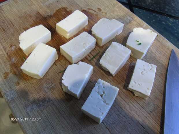 Realmente sabroso Tofu. Este queso de soja es cualquier cosa menos blandita e insípido. Es dulce y salado y un poco amargo, con un toque de sabores asiáticos. La textura es un poco seco, como cecina gruesa y firme. Es fácil de hacer, siempre y cuando