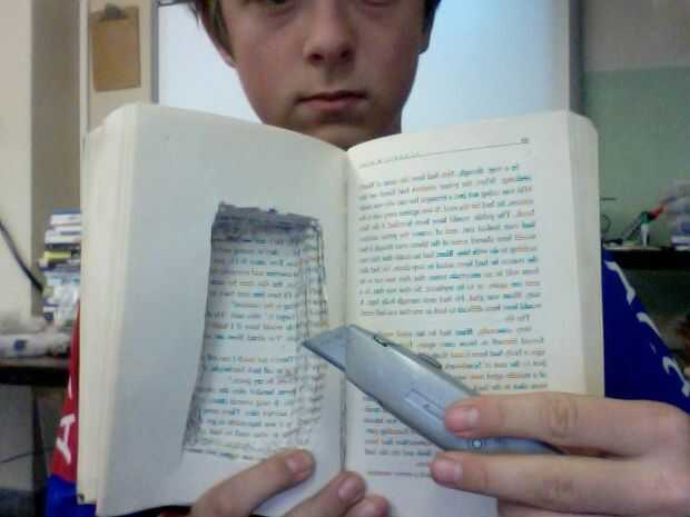 El interior de las líneas de corte y corte lo suficientemente profundo que puede cerrar el libro hasta el final cuando el teléfono está en el mismo