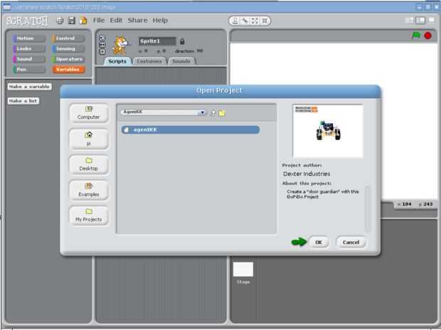 Seleccione agentKK y haga clic en el botón OK para cargarlo dentro de Scratch.